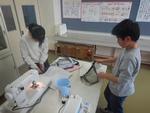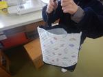 ミシンを使って、お気に入りの布で手さげ袋を作っていました。