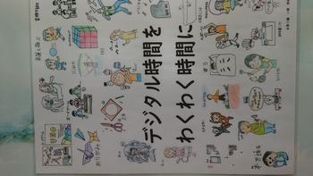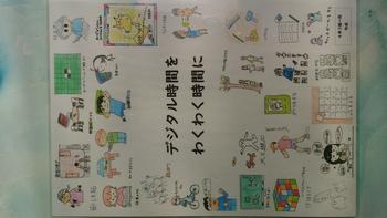 2.「デジタル時間をわくわく時間に」のポスターは、6年生の一人一人が絵を描き1枚にまとめたものです。