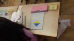 1年生は、教科書にある形を手元で操作しながら、辺や角を捉えていきます。