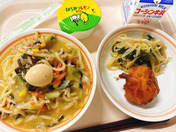 味噌ラーメン カレーじゃがまる もやしのナムル はちみつレモンゼリー 牛乳