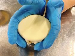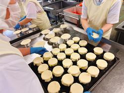 カップにシチューを入れて、上にパイ生地をのせて