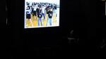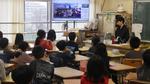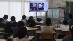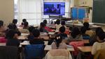 6年生と児童会役員は、多目的室から生中継!ほかの学年は、教室で行いました。