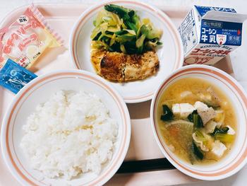 ごはん のりの佃煮 すずきのごま味噌焼き 昆布茶和え 豚汁 牛乳
