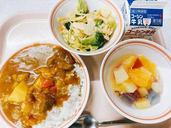 幸谷カレーライス チップスサラダ サイダーポンチ 牛乳