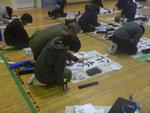 講師の先生にご指導をいただき、5、6年生が書き初めの練習をしました。