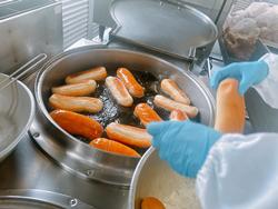 ピラフはアルファ化米を使って、大きな回転釜で作っていますよ。