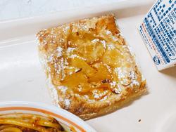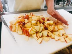 グラニュー糖とレモン汁で煮たりんごをのせて