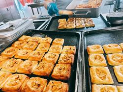 こんがりおいしく焼き上がり、仕上げに粉糖をかけて