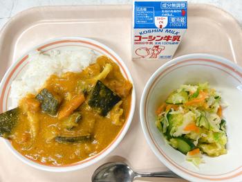 冬野菜カレーライス 夏みかんサラダ 牛乳
