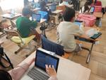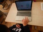1年生の教室をお邪魔すると、タブレットを開いているところでした。