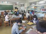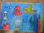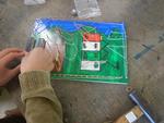 図工室を訪問すると、「釘打ちとんとん」の作品がほぼ完成していました。