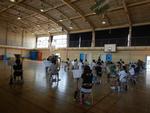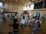 体育館での練習は、数々の暑さ対策の中、行われています。