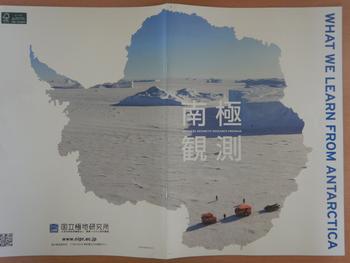 「南極の氷」と「南極観測基地のパンフレット」です。