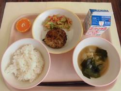 12月4日(木) ご飯 和風ハンバーグ 野菜のごま和え 味噌汁 みかん 牛乳 |