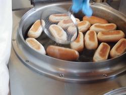 今日は立春。春が含まれる魚、鰆(さわら)をパンに合わせた味付けにして焼きました。給食は大量調理なので、焼いている途中でタレをかけると、オーブンの庫内温度が下がってしまうため、焼く前に調味液に浸す場合と、焼いてからあらかじめ加熱した調味液をかける場合があります。今日は、焼く前に調味液に90分間位浸してから焼きました。しょうゆ、ソース、ケチャップ、カレー粉、こしょう、おろしにんにく、おろし生姜を合わせた調味液です。肉にも魚にも合うスパイシーソースです。 |
