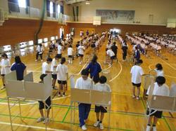 本日の午後に、生徒会役員選挙を行いました。立候補者及び推薦責任者による立会演説会の後、体育館で投票が行われました。各立候補者の演説から、栗ケ沢中学校をより良い学校にしてきたいという想いと、そのために精一杯生徒会役員として頑張りたいという決意がよく伝わりました。また、その後の投票は、実際に選挙で使用される記載台や投票箱を用いて、緊張感のある雰囲気の中で行われました。今回の選挙で選ばれた生徒会役員を中心として、さらにパワーアップしていく栗中に、どうぞご期待ください。