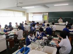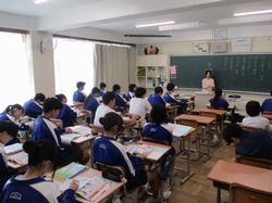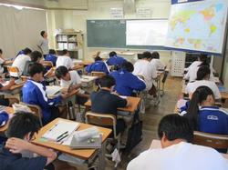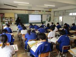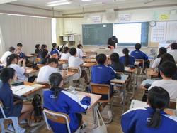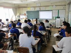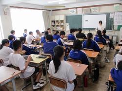 本日の授業の様子です。2年生の理科の授業では、人体模型を見ながら、心臓のはたらきについての学習をしていました。ヒトの心臓は、1日で約7000~8000リットルの血液を送り出し、平均寿命(約80年)で計算すると、心臓は約30億回拍動するそうです。運動すると心拍数が上がり、血液をより多く送り出し、トレーニングを続けると心臓が強くなり、より効率よく働くようになるそうです。普段私たちの体の中で知らないうちにはたらいている内臓について、興味をもって学習している様子でした。