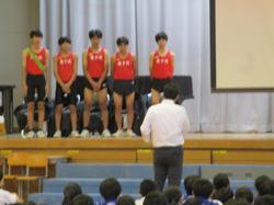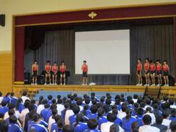 10月18日(土)に行われる「第77回 東葛飾地方中学校駅伝競走大会」に出場する特設駅伝部の壮行会を行いました。全長約31.9kmを10人の走者によるたすきリレーでつなぐ東葛駅伝は、1948年から続く歴史あるイベントで、東葛6市の公立・私立中学校、計74校以上が出場します。学校の代表として、最後の最後まで力を出し切り、悔いのない走りをしてきてほしいと思います。