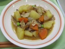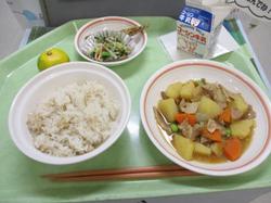 本日の給食です。「肉じゃが」は、日本の家庭料理を代表する煮物の一つで、肉・じゃがいも・玉ねぎを甘辛いしょうゆベースの出汁で煮込んだ料理で、関西では牛肉、関東では豚肉を使うことが多いそうです。関東風の豚肉を使った肉じゃがは、優しい味付けで、素材の美味しさをしっかりと感じられるものでした。なお、「肉じゃが」は、明治時代に海軍でビーフシチューを日本風に作るよう指示されたものの、当時はバターやワインが手に入りにくかったため、醤油と砂糖で代用して作られたものが原型になったと言われているそうです。