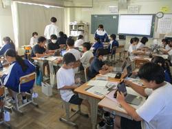 本日の授業の様子です。久々にすっきりと晴れた秋空の穏やかな日差しの下、栗中生は落ち着いた雰囲気の中で学習に取り組んでいました。元気に活動する場面と、静かに集中して課題に取り組む場面のけじめが全体的にしっかりとつけられており、メリハリのある学校生活を送ることができています。授業の様子を見ていると、今日の天気に勝るとも劣らない、爽やかな雰囲気を感じることができました。