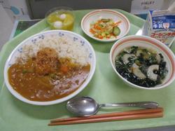 本日の給食です。明日10月18日(土)に東葛飾地方駅伝競走大会が開催されることにちなんで、本日の給食は「東葛駅伝応援メニュー」として「絶対勝つカレー」が提供されました。サクサク食感に揚げられたとんかつと、玉ねぎの甘さとスパイスの辛さの調和のとれたルーが絶妙にマッチし、ボリューム満点の絶品カツカレーでした。きっとこれでパワーをもらい、明日の東葛駅伝で選手は実力+αの素晴らしい走りを見せてくれるのではないかと思います。栗中の代表として出場する選手を、みんなで応援しましょう!!
