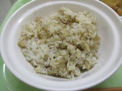 本日の給食です。「ちりめんじゃこの混ぜごはん」は、ちりめんじゃことかつお節の風味が際立っており、塩味が控え目でも全く問題なく、とても美味しかったです。「もやしとわかめのごま酢和え」は、酸味が抑えられたごま酢の味がとても良く、もやしのほどよいしゃきしゃき食感と、わかめの柔らかさが絶妙にマッチしていて、とても美味しかったです。