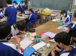 本日の授業の様子です。3年生の美術の授業では、粘土細工に挑戦していました。白色の粘土を着色してから整形している生徒もいれば、先に形を作ってから、色塗りを行っている生徒もいました。美術の学習は、言葉では表しきれない感情や考えを表現する力をつけたり、既存の枠にとらわれない自由な発想の思考力を高めたりすることができ、現代社会で特に求められる「正解のない問い」に向き合う柔軟な発想力や問題解決力を養うことができます。いろんな題材や技法を駆使しながら、自己表現をすることの楽しさを感じていってほしいと思います。
