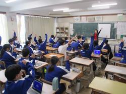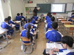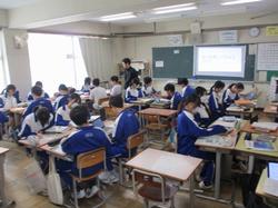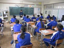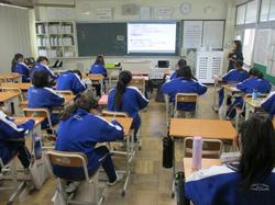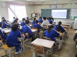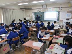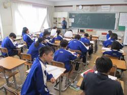 本日の授業の様子です。授業中に積極的に挙手をして発言したり、意思表示したりする様子が多く見られるところに、栗中生の素直さが感じられます。3年生の数学の授業では、相似な図形についての学習を行っていました。図形の学習は、頭の中で形をイメージして考えたり、言葉で論理的に証明したりすることに難しさを感じる生徒も多いですが、これらの力は社会に出てからも必要となるものです。粘り強く学習に取り組み、力を高めていってほしいと思います。