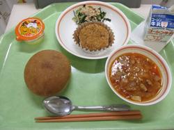 本日の給食です。本日10月31日はハロウィンということで、カボチャを使ったメニューが提供されました。ハロウィンは古代ケルト人のお祭り「サウィン」に起源をもち、そのお祭りは夏の終わりと冬の始まりを意味し、死者の霊が現世に戻ってくるとされ、悪霊を追い払うために仮装し、カボチャをくり抜いた「ジャック・オー・ランタン」を飾られていたそうです。現代では仮装イベントとして楽しまれることが多いようですが、由来を理解し、節度をもって楽しんでほしいものですね。