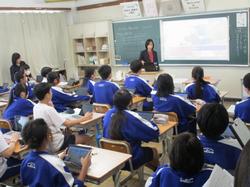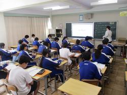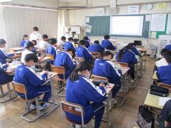 本日の午後の千教研で、栗中が英語科と社会科の研修会場となり、2年生の2クラスで研究授業が行われました。他校から来校した多くの教職員が見つめる中、該当学級の生徒はいつもよりも緊張した面持ちで、一生懸命課題に取り組んでいました。このような授業研修会を積み重ねていくことが、今後の松戸市全体の教科指導の向上につながっていくものと考えております。ご協力いただいたみなさん、ありがとうございました。
