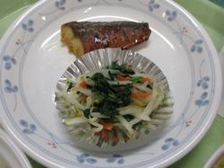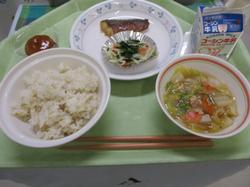 本日の給食です。本日も「旬を味わう献立」として、この時期に旬を迎えるさば、ほうれんそう、白菜、さつまいもを取り入れたメニューが提供されました。「さばの西京焼き」は、脂ののったさばの切り身が柔らかくてジューシーで、とても美味しかったです。「とろとろ白菜と鶏肉のうま煮」は、鶏肉から出ただしのおいしさはもちろんのこと、白菜の甘さが際立っていました。旬の食材のおいしさを改めて実感できるメニューでした。