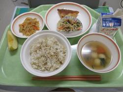 本日の給食です。11月24日は、和食がユネスコ無形文化遺産に登録されたことをきっかけに「和食の日」に制定されました。米飯を主食に、一汁三菜を基本とする和食は、理想的な栄養バランスといわれています。また、日本は海や山に囲まれ、新鮮な食材が手に入ることから、素材の味わいを活かして料理をします。素材の味を引き出すために、「うま味」を含む「だし」や「発酵食品(みそ・しょうゆ・酒・酢・みりん)」を活用することが特徴です。本日の給食では、脂ののった赤魚や全くえぐみのない切干大根など、素材自体のおいしさを活かした和食が提供されました。