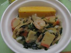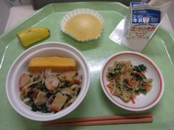本日の給食です。「鍋焼きうどん」は、江戸時代末期に大阪で誕生したと言われる日本の伝統的な温かい麺料理で、土鍋を使って直接火にかけて調理するのが特徴で、具材には鶏肉、しいたけ、ほうれん草、かまぼこ、卵などが一般的に使われます。本日のメニューの「あったか鍋焼きうどん」は、さすがに土鍋では提供できませんが、エビのむき身やだし巻き卵が具材に追加された具沢山の一品で、熱々で提供されており、うどんにはしっかりとコシがあり、とても美味しかったです。