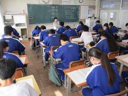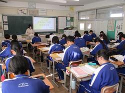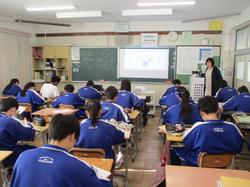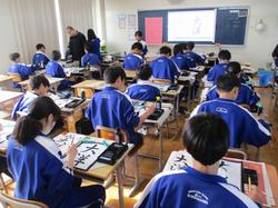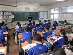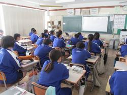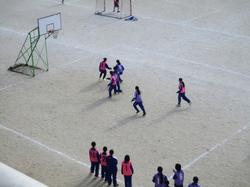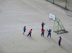 本日の授業の様子です。2年生の体育の授業は、体育館が工事で使用できないため、グラウンドのコートを利用してバスケットボールが行われていました。栗中のグラウンドにはバスケットゴールが常設されており、昼休みにバスケットボールを楽しんでいる生徒も多くいます。朝の冷たい空気から一転し、柔らかな日差しが差し込むグラウンドには、ボールを追いかける足音と元気な声が心地よく響いていました。