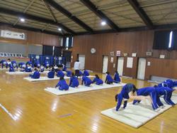 本日の授業の様子です。1年生の体育の授業では、体育館が使用できないため、武道場でマット運動を行っていました。マット運動は、基礎的な運動能力を高め、安全に身体の使い方を学び、柔軟性やバランス感覚、体幹の強化など、様々な運動の土台を育みます。本日の授業では、グループごとに分かれて準備運動を行っていましたが、各グループともきびきびと行動し、明るく前向きで、すがすがしい雰囲気の中で授業が展開されていました。