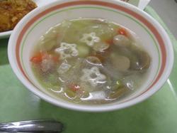 本日の給食です。本日は「クリスマスパーティー」と題したメニューで、献立表には「1年に1度の特別な日、給食もいつもよりちょっと特別に。ガーリックが食欲をそそるステーキライスや、ザクザク食感も味わえるチキン。サラダとスープは星と雪が降り注ぎ、まるでクリスマスの夜空みたい。見た目も味もクリスマス気分いっぱいの献立で、楽しいひと時を過ごしてください。」とメッセージが添えられていました。全メニューとも、2学期の給食を締めくくるにふさわしく、華やかで特別感があり、とても美味しかったです。