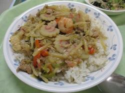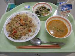 本日の給食です。1月は、2年生が家庭科の授業で立てた給食の中から9人分の献立が採用されており、本日はその第二弾です。献立を作成した生徒からは、「この寒い冬を乗り切れるような給食を考えました。残さないでください。」とのコメントが寄せられています。「中華丼」は具沢山で栄養満点な一品で、「ピリ辛坦々スープ」はごまのまろやかな味わいでありつつ、しっかり辛い熱々のスープで、しっかり食べることで厳しい冬も元気に乗り切ることができそうなメニューでした。