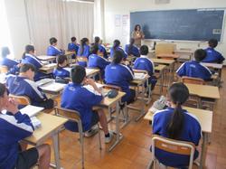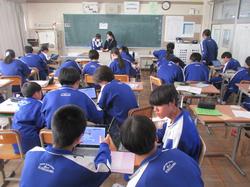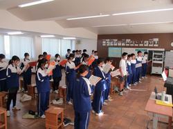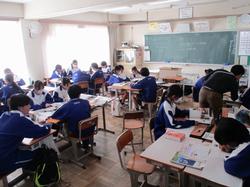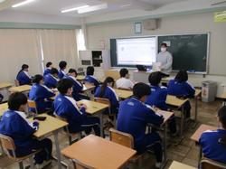 本日の授業の様子です。3年生の社会の授業では、模擬裁判が行われていました。裁判官や検察官、被告や弁護人、傍聴人など、それぞれの役割を設定し、本物の裁判さながらの台本に沿って行われており、教室内は緊張感に包まれていました。模擬裁判は、対立する立場を体験して多角的な視点を養い、証拠に基づき議論する論理的思考力を育むという意義があります。身近なルールや正義について自ら考え、主権者として社会に参画する意識を高めていってほしいと思います。