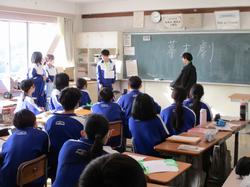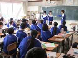本日の授業の様子です。2年生の社会の授業では、幕末の動乱期を題材に、班ごとに自分たちで制作した歴史劇を発表していました。登場人物の立場や当時の社会情勢を調べ、劇として表現する過程で、人物の思いや出来事の背景を主体的に考える姿が見られ、単なる知識の習得にとどまらない学びの機会となりました。社会の授業では、様々な形式で体験的な学びを取り入れ、生徒が学習内容を身近に感じられる授業づくりを進めています。