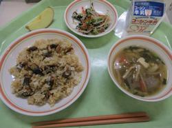 本日の給食です。1月は、2年生が家庭科の授業で立てた給食の中から9人分の献立が採用されており、本日はその第八弾です。献立を作成した生徒からは、「この給食は”食べやすい和食で残菜ゼロを目指して”というテーマの通り、食べやすい和食にし、副菜や汁もので栄養バランスを整えました。残さず食べてください。」とのコメントが寄せられています。「いわしのひつまぶしご飯」は、リクエストメニューでも上位に入る人気メニューで、甘辛いいわしの蒲焼がごはんとよく合い、とても美味しかったです。