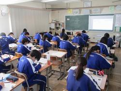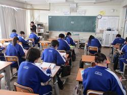 本日の授業の様子です。土日に降雪があり、本日の登校への影響も心配されるところでしたが、道路上にはほとんど雪はなく、校庭の隅に残る程度であったため、特に問題なく教育活動を行うことができました。昼休みには、童心に帰って校庭に残った雪で遊んでいる生徒もいたようです。各授業では、それぞれ試験が目前に迫っていることもあり、自分がやるべき課題にいつも以上に真剣に取り組んでいる様子でした。