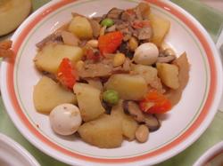 本日の給食です。2月は楽しみにしている生徒も多い、「リクエスト給食」です。本日のリクエストメニューは「うずら卵入り肉じゃが」です。うずらの卵とちくわが入った肉じゃがは、彩りも食感も豊かで食べる楽しさが広がる一品です。定番の味に優しい工夫が加わり、ほっとするおいしさに仕上がっていました。