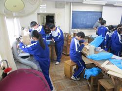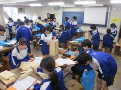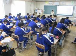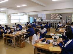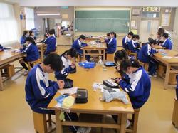 本日の授業の様子です。2年生の美術の授業では、美術家の教員が机上でポーズをとってデッサンモデルとなり、生徒はスケッチを行っていました。短時間で描くことが課題として設定されており、みんな真剣な表情で取り組んでいました。技術・家庭科の授業では、残りわずかとなった授業回数の中で作品を完成させるため、互いに声をかけ合いながら工夫して作業を進めていました。