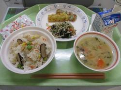 本日の給食です。ひな祭りにちなんだ特別献立の給食が提供されました。昨日の3月3日ではなく、本日がひな祭りメニューになったのは、昨日が公立高校合格発表のために給食がなかった3年生に対する、栄養士の優しさによるものです。彩り豊かなちらし寿司は、甘味や酸味がちょうど良く、様々な具材の食感も楽しめ、とても美味しかったです。日本の伝統に親しみ、季節の移ろいを感じられる給食となりました。