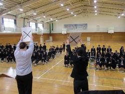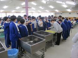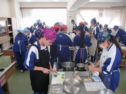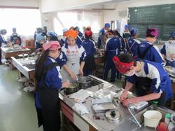 本日の授業の様子です。3年生は、体育館で呼名練習を行っていました。呼名の返事を大きな声ですることは、卒業生が新たな道へ進む決意を示し、仲間や保護者へ感謝を伝える大切な所作です。明るい3年生らしく、楽しく盛り上がりながら、みんな自分のベストを尽くして頑張っていました。2年生の家庭科の授業では、調理実習を行っていました。協力し合い、手際よく作業を進めながら、楽しそうに取り組む姿が見られました。