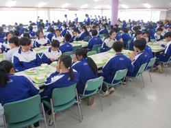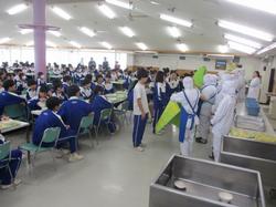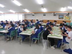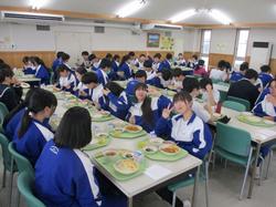 本日の給食です。本日は3年生の給食最終日でした。節目の日にほぼ必ずカレーを食べるのも、今回がラストです。特別に、給食棟で最後の給食を食べている3年生を撮影しましたが、みんな楽しそうに、美味しそうに、そしてどこか名残惜しそうに味わっている様子が印象的でした。食事後には、これまでお世話になってきた調理員さんへのメッセージが贈呈されました。これからも、自分の身体を作る「食」を大切に、人生を歩んでいってほしいと思います。