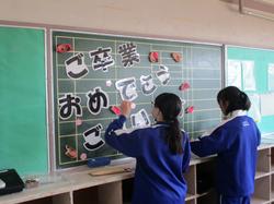 卒業式に向けて、在校生が心を込めて準備を進めてくれました。会場や3年生の教室等の清掃や飾り付け、受付の補助など、どの役割にも一生懸命取り組む姿が印象的でした。卒業生が気持ちよく旅立てるようにと、一つひとつの作業に思いを込める姿はとても頼もしく、学校全体を温かい雰囲気で包んでくれました。在校生の支えによって、今年も素晴らしい卒業式を迎えることができました。