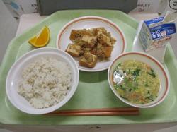 本日の給食です。「生揚げと豚ひき肉のスタミナ炒め」は、香ばしく焼き上げた生揚げに、うま味たっぷりの豚ひき肉がよく絡み、食欲をそそる一品となっていました。にんにくの風味がほどよく効き、ご飯との相性も抜群です。栄養バランスに優れ、特にたんぱく質をしっかり摂れるメニューは、成長期の体を作るうえでとても大切です。美味しく食べながらエネルギーを補給し、元気に学校生活を過ごしてほしいと思います。
