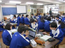 本日の授業の様子です。1年生の理科の授業では、「オレンジ色の画用紙のみを使って、卵を割れないように高いところから落とす」という課題に取り組んでいました。どうすれば衝撃をやわらげられるか、紙を折ったり丸めたりしながら試行錯誤する姿が見られました。結果を見て歓声や驚きの声が上がり、科学の楽しさと工夫する大切さを実感できる学びの時間となりました。