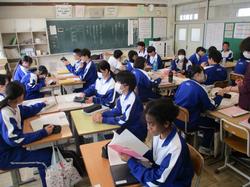 本日の授業の様子です。1年生の音楽の授業では、シューベルトの歌曲「魔王」を鑑賞していました。中学校の音楽の授業では定番の曲で、印象的な旋律から、大人になっても記憶に残っている人も多いのではないかと思います。語り手・父・子・魔王の4つの役を一人で歌い分ける表現や、ピアノ伴奏が生み出す緊迫した雰囲気に、生徒は真剣な表情で耳を傾けていました。